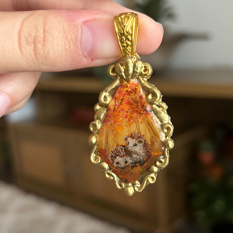 Each piece is meticulously crafted and hand-painted with intricate designs, ensuring that no two are ever the same. Set on 14k gold jewelry, every pendant is complemented by a selection of semi-precious and precious stones. Whether you're seeking a statement piece or a delicate accent, our collection brings together art, nature, and luxury to create timeless treasures that you'll cherish forever.